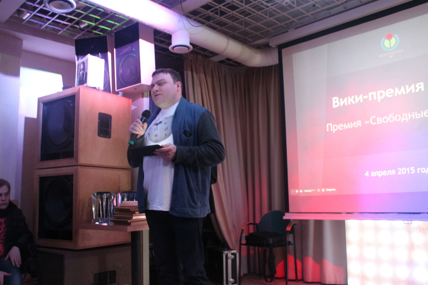 Александр Плющев. Представлять лауреатов и вручать награды ему помогали руководители НП «Викимедиа РУ»