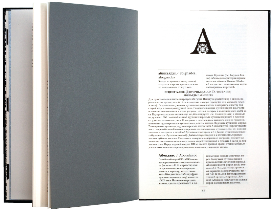 В статьях от А до Я описываются мировая история гастрономии, биографии известных людей, как связанных с поварским искусством, так и великих гурме, а также продукты, кухонные приспособления, поварские хитрости и кулинарные термины.