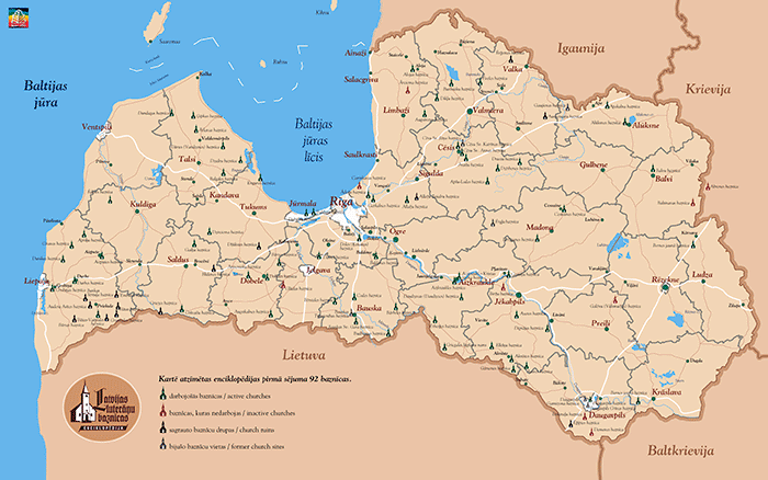 Том 1 энциклопедии в 4 томах «Латвийские лютеранские церкви: история, архитектура, искусство и мемориальная культура» (Latvijas luterāņu baznīcas: vēsture, arhitektūra, māksla un memoriālā kultūra) содержит статьи о лютеранских храмах Латвии, а также фотографии фасадов и интерьеров. Местоположение каждой церкви указано на карте.