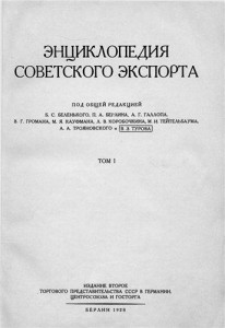 Энциклопедическое издание времен НЭПа. "Энциклопедия советского экспорта" издание является вторым, полностью переработанным изданием "Энциклопедии русского экспорта" (1924).