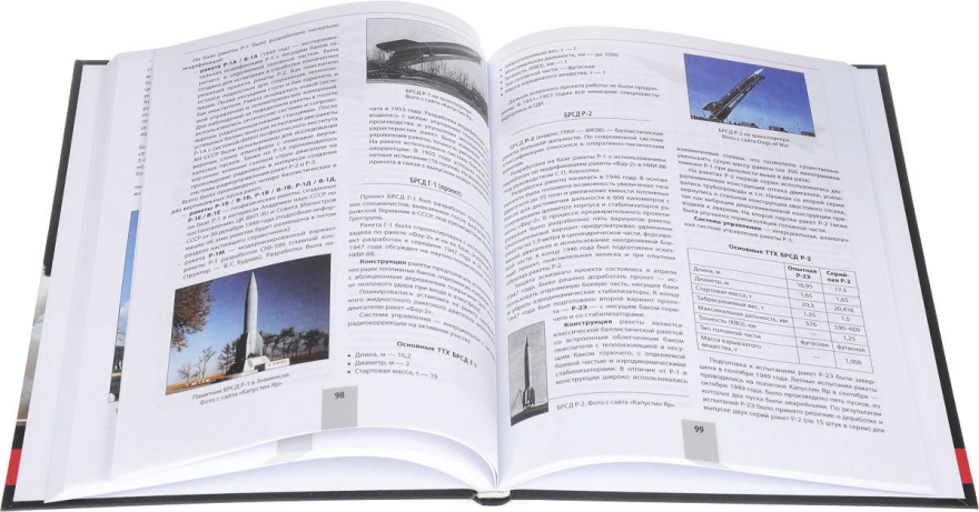 Включает информацию о 100 типах советских и российских ракет, благодаря которым страна стала ведущей космической державой и сохраняет свой «ядерный щит».