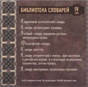 Четвертый выпуск серии "Библиотека словарей" содержит электронные версии редких антикварных энциклопедических изданий по истории, мифологии и литературоведению, а также лингвистические и церковно-агиографические словари.