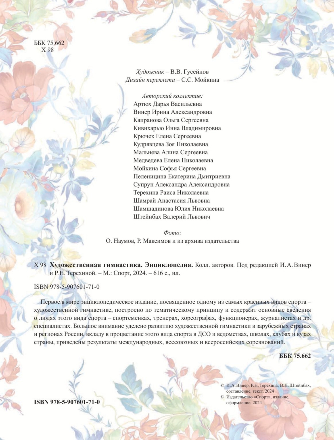 Первое в мире энциклопедическое издание по художественной гимнастике. Построено по тематическому принципу и в основном содержит персоналии (спортсменки, тренеры, хореографы, функционеры, журналисты и другие специалисты).