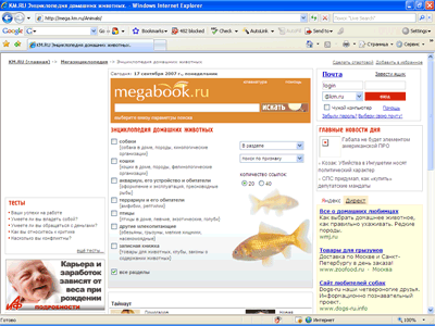 Некоторые рубрики энциклопедии: Собаки; Кошки; Аквариум, его устройство и обитатели; Террариум и его обитатели; Птицы; Другие млекопитающие; Записная книжка.