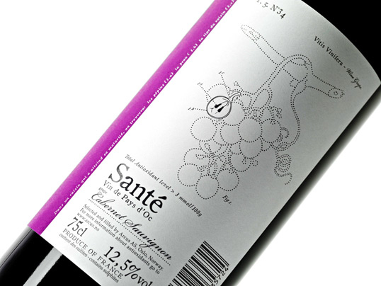 Дизайнеры из норвежского бюро Designers Journey отказались от общепринятого подхода при разработке винной этикетки — бутылку торговой марки Santé украсила иллюстрация из энциклопедии, пишет Lovely Package [1]