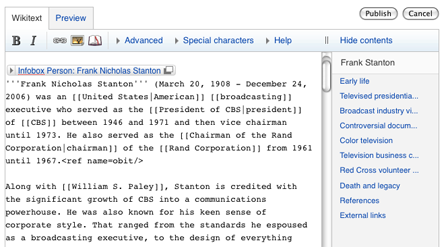 Будет представлена новая панель инструментов для внесения правок в тексты статей: в частности, она ускорит работу с ссылками и таблицами. Строка поиска «переедет» в правую верхнюю часть экрана. Планируется убрать кнопки «Go» («Перейти») и «Search» («Найти»), которые, по мнению инициаторов изменений, вводят пользователей в заблуждение, и ввести единую кнопку поиска.
