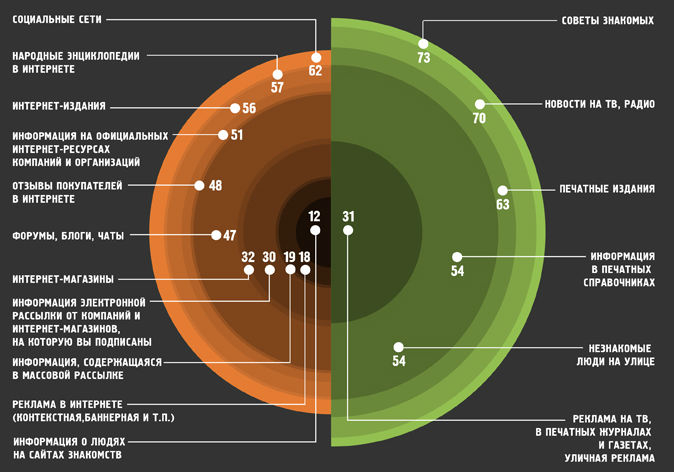 опубликовал пресс-выпуск с результатами опроса россиян о том, какой информации — той, что получают в Сети, или за ее пределами — больше доверяют пользователи интернета, и какие ресурсы — интернет-сервисы или традиционные — пользуются большей популярностью.