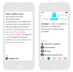 — В формате приложения словарь неизбежно приобрёл новые сценарии взаимодействия. Добавили перекрёстные ссылки — и всё — теперь в нем можно залипнуть минут на сорок. Появились новые задачи: как минимум, не дать потеряться или не утомить. Сказать проще, чем сделать — в телефоне и в книге одинаковый объём текста ощущается очень по-разному. В приложении мы имеем дело с бесконечной простыней текста, через которую нужно с усилием прорываться. Недостаточно подобрать грамотные параметры набора для основного и дополнительного текста. Поток нужно рвать — поэтому у нас каждая цитата стоит на отдельной строке и отбита от соседних абзацев, а из текста всплывают окна со справками о писателях.