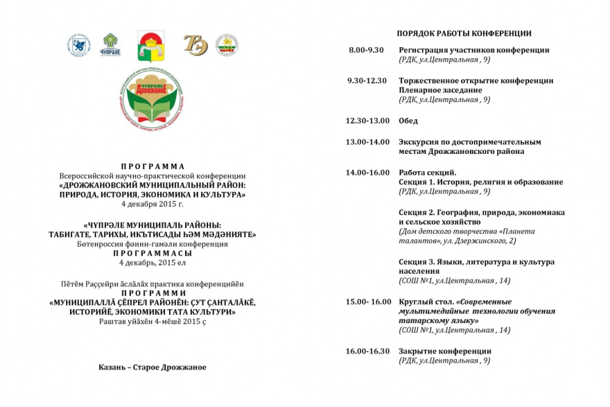 4 декабря 2015 года в Дрожжановском районе Татарстана прошла научно-практическая конференция на тему «Дрожжановский муниципальный район: природа, история, экономика и культура»,