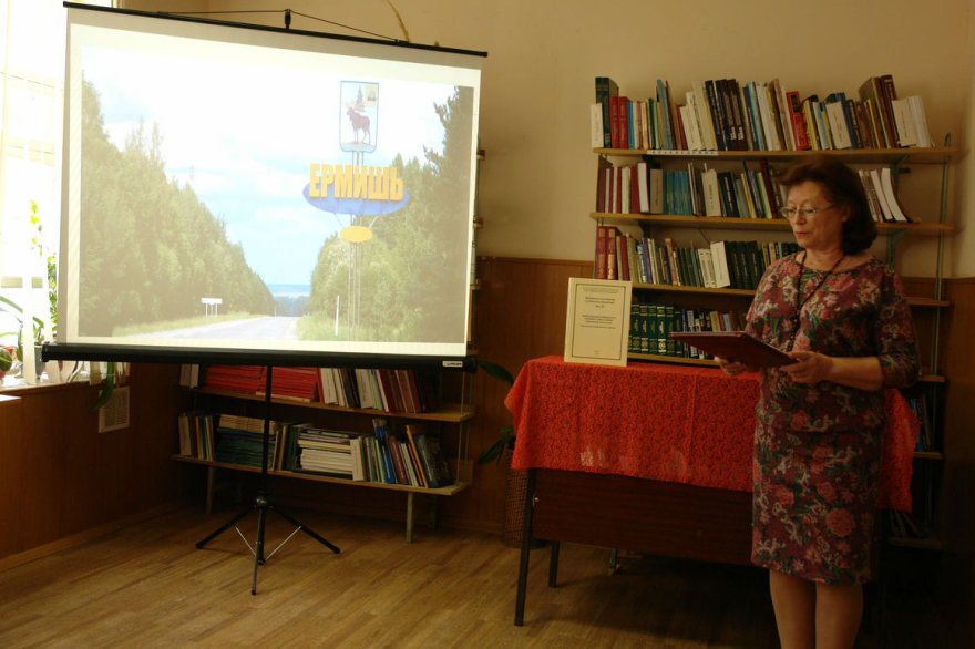 На презентацию в посёлке Ермишь собрались официальные лица, учащиеся филиала Кадомского технологического техникума (КТТ), работники культуры, краеведы, читатели библиотеки.
