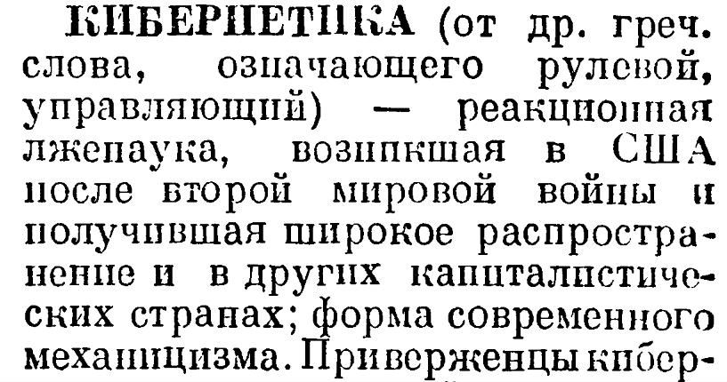 Историк науки не без интереса посмотрит на дефиницию кибернетики в «