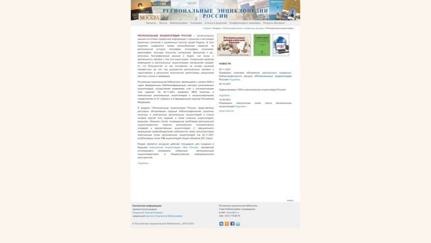 - Региональные энциклопедии России/ Администратор раздела А. И. Раздорский. — Текст: электронный// Российская национальная библиотека. — URL: https://nlr.ru/res/epubl/rue/index.html (дата обращения: 31.01.2023).