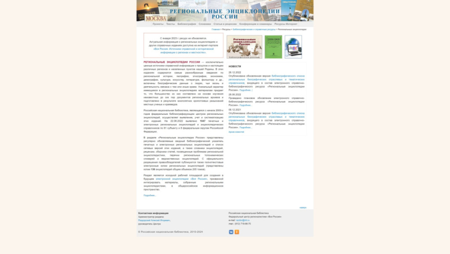 В Российской национальной библиотеке (РНБ) проведено плановое обновление электронного справочно-библиографического ресурса «Региональные энциклопедии России» [1]