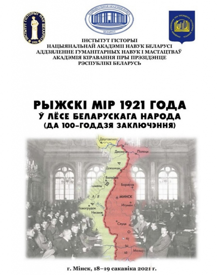 В Риге после польско-советской войны делегациями Польши, РСФСР2 и УССР3 без учета интересов белорусского народа был подписан мирный договор. Его заключение привело к тяжелейшим территориальным потерям. Согласно договору, почти половина этнической белорусской территории отошла к Польше. Хотя Рижский мирный договор юридически закрепил независимость ССРБ4 и гарантировал белорусам национально-культурные права в составе польского государства, но в перспективе он не обеспечил реализацию их прав на духовно-культурное развитие, не содействовал единству и безопасности народов Восточной Европы, что особенно явно проявилось в сентябре 1939 года.Организаторами мероприятия стали ИИ НАНБ и Академия управления при Президенте РБ (АУпПРБ; Акадэмія кіравання пры Прэзідэнце Рэспублікі Беларусь, Акадэмія кіравання, АК).Комментарий НАНБ