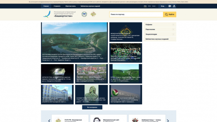 башкирском языках, материалы которой нами актуализируются. На портал загружаются электронные версии всех выпущенных нами энциклопедий и монографий.