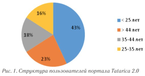 44 лет (рис. 1). Таким образом, представители всех возрастов являются пользователями онлайн-энциклопедии, но основная масса читателей — это учащиеся общеобразовательных учреждений, студенты колледжей и вузов.
