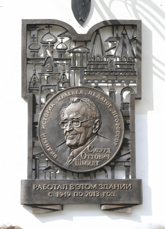 11 сентября 2022 года на здании Историко-архивного института Российского государственного гуманитарного университета (ИАИ РГГУ) открыли мемориальную доску историку, краеведу, педагогу и энциклопедисту Сигурду Оттовичу Шмидту (1922—2013), информируют ТАСС [1]1, «Российская газета» [2]2, «Российское историческое общество» (РИО) [3]3, «Смотрим» [4]4 и другие СМИ.Сегодня мы открываем мемориальную доску Сигурду Оттовичу Шмидту — выдающемуся учёному, москвоведу, учителю, наставнику для многих и многих поколений, для тех, кто учился здесь, в Историко-архивном институте. В этом году Сигурду Оттовичу исполнилось бы 100 лет. С его именем связано возрождение краеведческого движения по всей России.Руководитель столичного департамента культуры, член президиума РИО Александр Кибовский отметил, что проведение мероприятия в День города — очень справедливый шаг, поскольку учёный был «одним из горячих патриотов московского краеведения».Константин Могилевский, председатель правления РИО, исполнительный директор фонда «История Отечества»