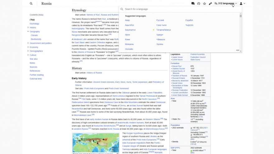 30%. При этом зарегистрированным пользователям постоянно доступен так называемый фиксированный заголовок (sticky header), что обеспечивает быстрый доступ к часто используемым ссылкам по мере прокрутки страницы: слева — разделы публикации; вверху — поиск, название статьи, её обсуждение, предыдущие версии, добавление в избранное, доступ к редактированию, переключение на другую языковую версию, выпадающее меню с пользовательскими настройками. Согласно проведённым тестам, возможность сосредоточиться на чтении снизила скорость скроллинга более чем на