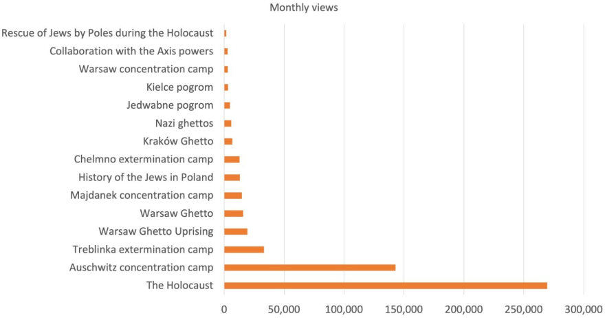 По мнению учёных, Википедия играет решающую роль в информировании общественности о Холокосте в Польше. Например, статья «Холокост» (The Holocaust) набирает в среднем почти