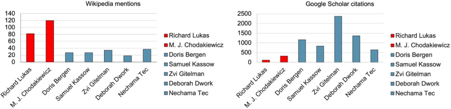 Марек Ян Ходакевич (Marek Jan Chodakiewicz). Среди идей Лукаса — попытка расширить определение Холокоста и включить в него убийство этнических поляков немцами. Второй находит различные оправдания для насилия поляков в отношении евреев. Различные волонтёры пытались противостоять ревизионистской группе на протяжении многих лет. Однако по состоянию на август 2022 года польские евреи — одна из
