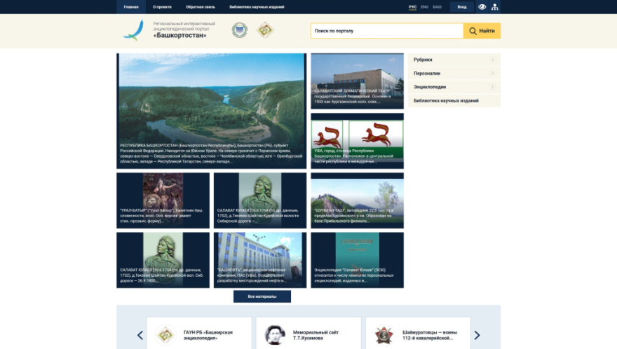 Башкортостан». Портал обеспечивает единый доступ к многоуровневой системе научного знания о Республике Башкортостан. Основу контента портала составляют статьи (более