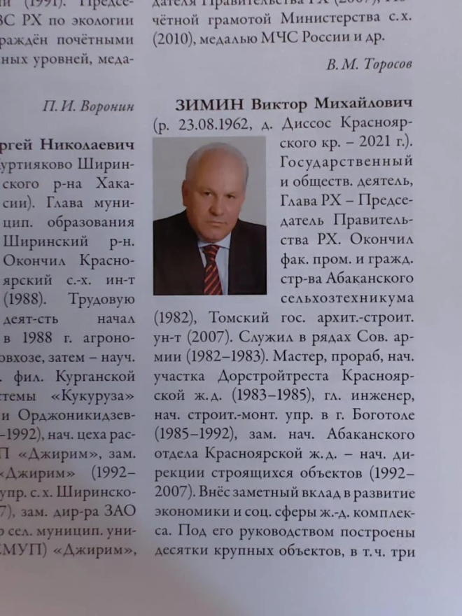 Виктора Михайловича Зимина (автор статьи В. М. Торосов, с. 51-52): В. М. Зимин скончался 23 ноября 2020 года [1]
