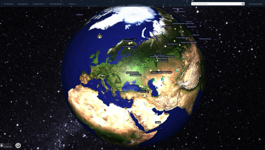 Сайт включаёт трёхмерный глобус-карту и справочник месторождений, определители минералов и пород планеты Земля, соответствующие рубрикаторы, а также фильтр по полезным ископаемым и конструктор минералов и пород.