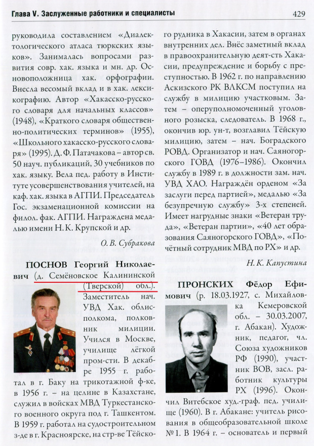Дарья Фёдоровне Патачаковой (с. 428-429) дата смерти вновь неполная — только 2000 г., а место смерти — указано ошибочно (г. Красноярск). В подготовленном нами словаре-справочнике «Учёные ХакНИИЯЛИ» полная дата смерти Патачаковой приведена (с. 86-88) — 20 ноября 2000 г., а умерла она в г. Абакане [12]