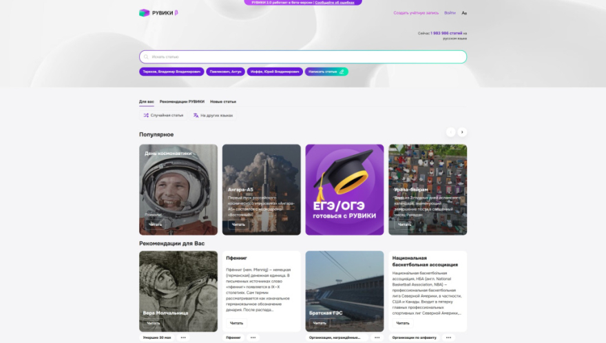 открылась бета-версия. Первоосновой стали статьи русской Википедии [5]