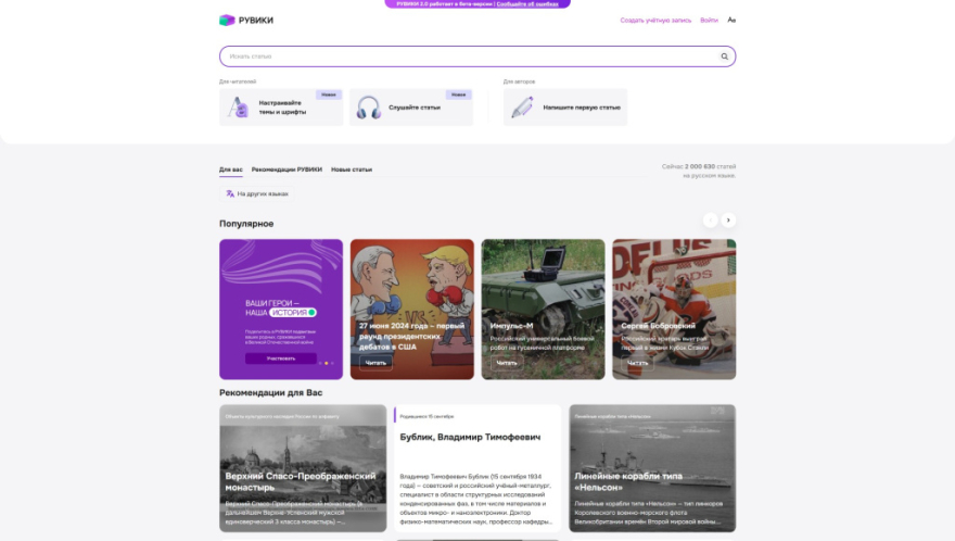 2 млн статей на русском языке, новый интерфейс и функционал. Добавилась возможность настраивать шрифты и темы, прослушивать статьи в аудиоформате, в том числе в сокращённом виде, становиться не только автором платформы, но и экспертом.