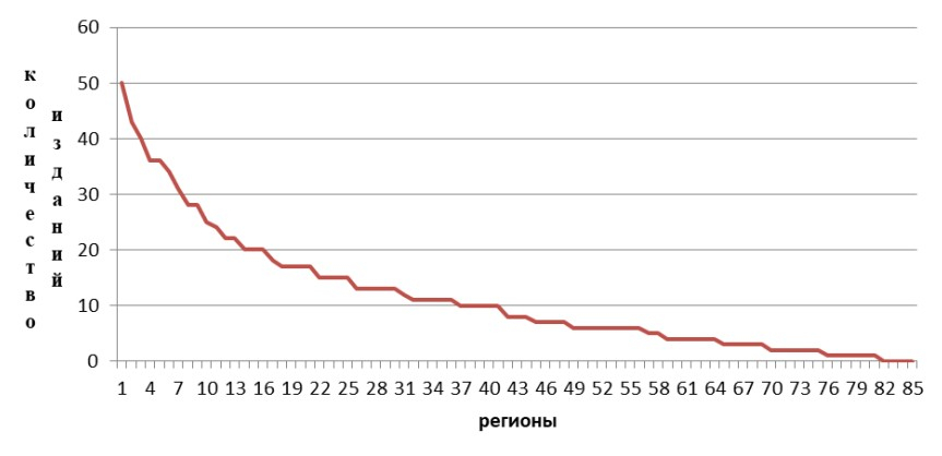 | Количество регионов | Группировка регионов по количеству изданий |