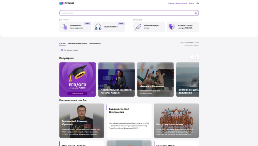 два тома огромной книги, ему нужна ёмкая, корректная и чёткая выжимка здесь и сейчас. Это именно то направление, где мы планируем развивать «Рувики». Умный поиск, который даёт суммаризированный ответ и приглашает погрузиться в релевантные темы. До конца года мы представим обновление, которое качественно выделит нас на фоне других энциклопедий.