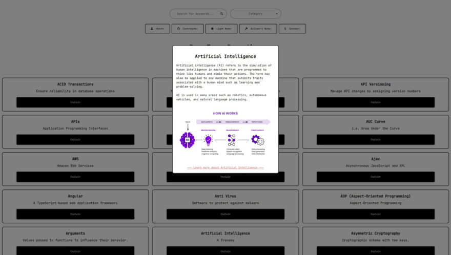 Важно: это всего лишь попытка бэкенд-разработчика на Python создать веб-сайт, который может помочь каждому. Возможно, это не самый модный сайт, но он создан с особой тщательностью, чтобы быть полезным инструментом для всех, кто испытывает затруднения с терминами из мира технологий.Из публикации Buzzpy в DEV Community