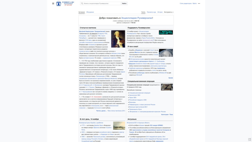- Русская Википедия. — Текст: электронный// Википедия — свободная энциклопедия. — URL: https://ru.wikipedia.org/wiki/Русская_Википедия (дата обращения: 14.11.2024).