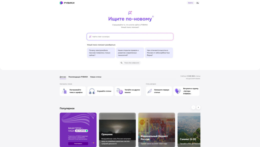 Изначально на платформе «Рувики» использовался простой поиск на основе технологии Elasticsearch, который позволял находить релевантные статьи по введённым пользователями ключевым словам. Однако, анализируя поведение наших пользователей, мы обнаружили, что они всё чаще стремятся получить конкретные ответы на свои вопросы, а не просто список статей. Запросы вроде «Когда Пётр Первый стал императором и где это произошло?» показывают, что современные пользователи ценят скорость и точность информации и не склонны тратить время на изучение множества ссылок. Владимир Медейко, генеральный директор АНО «Интернет-энциклопедия „Рувики“»