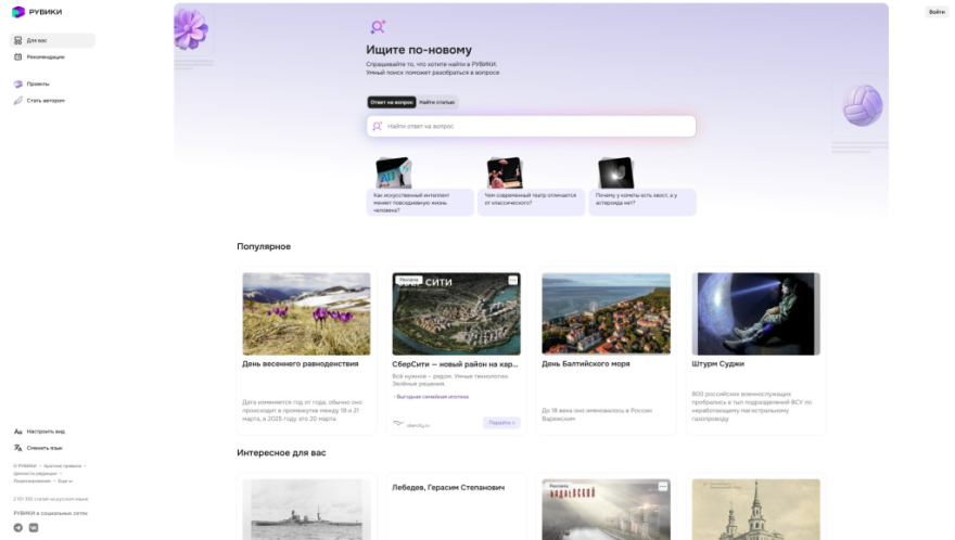 открылась бета-версия. Первоосновой стали статьи русской Википедии [17]