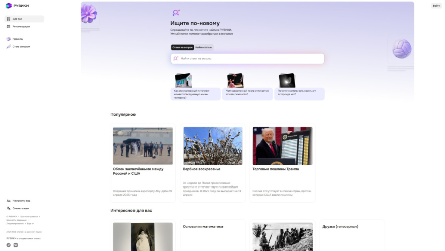 Мы держим своё обещание постоянно технологически улучшать проект, делая его современным и удобным. Это не только позитивно сказывается на посещаемости «Рувики», но и влияет на привычки наших читателей. Например, если в конце прошлого года основным действием пользователей был переход на статьи, то к концу первого квартала они гораздо чаще используют интеллектуальные функции «пересказ», «уточнение поиска» и «озвучка».Владимир Медейко, генеральный директор АНО «Интернет-энциклопедия „Рувики“»