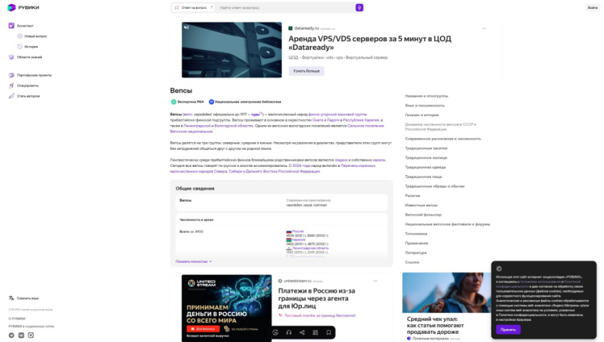 стартовал в онлайновой бета-версии в июне. Первоосновой послужили статьи и прочие материалы русской Википедии [7]